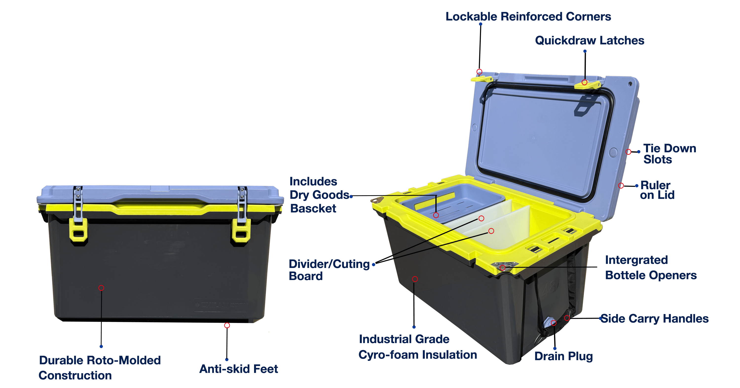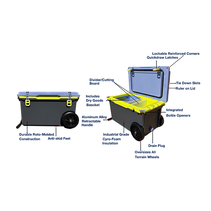Weighing up to 30% lighter than traditional rotomolded coolers, NEW coolers are built for your trips to the park, days on the boat, and weekends at the campsite. Plus, they ensure your food and drinks stay at maximum coldness throughout your journey.